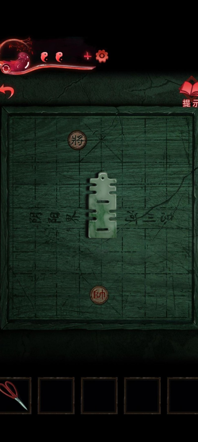 女孩用拐杖将佛头移至机关,外出剪下树杈上的皮影;男子拾取后进庙,查看牌示,女子下棋,直至仅剩将帅,取走半枚喜字。
