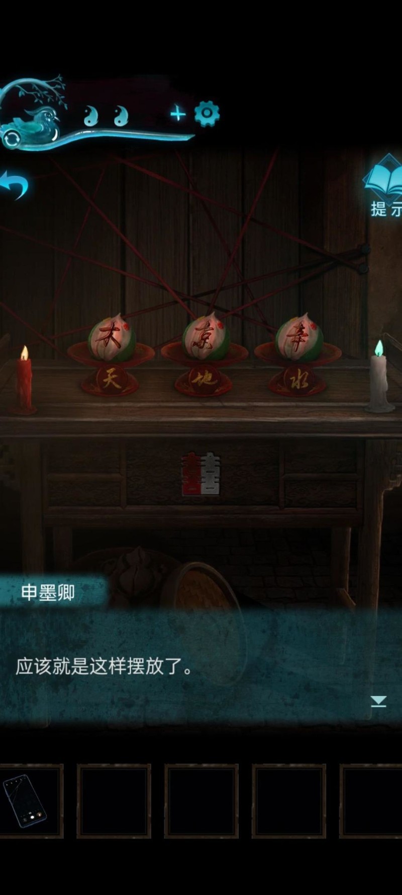 女子离开后,男子按柜上所显之字调整福字机关,得出死丧生死四字。随后取得凿子,前往前方庙宇拆下人头,将头颅与小乌龟一同顺水流放走。