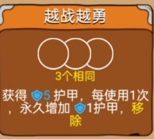 这三张卡的组合本身没有问题。可能是由于我使用的是旧版本,在某次对局中发现,使用双重打击后接越战越勇仅增加1点护甲(理论上应加2点)。经过思考,我决定将双重打击替换为越战越勇。虽然同样是两次越战越勇,但最终护甲层数多叠加了一层,效果更佳。