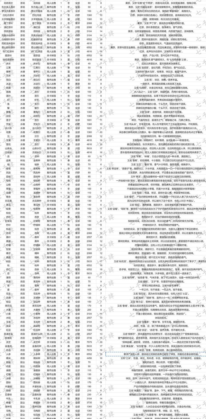 注意:本文包含超长图片,先展示汇总图,再按产地分类呈现图鉴,最后附带详细说明版本。欢迎探索游戏中隐藏的知识与趣味彩蛋。