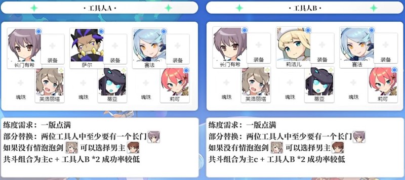 单C队伍对主C要求更高,工具人中最好有长门。若主C搭配两个B级角色,翻车几率会上升。
