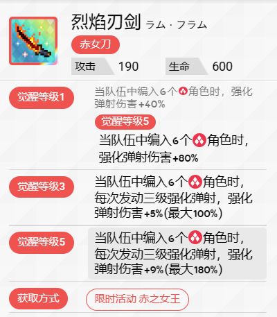 作为火属性辅助武器,它在纯火属性队伍中出场率较高。其PF3提供的暖机加成与火属性队伍后续的火伤降低机制契合度较好,整体表现较为出色。