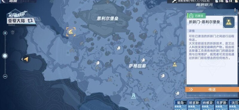 七日之森位于班吉斯原能塔以东,盛产炎龙果、磷光石榴、榛子与赤米基麦,具体位置已在地图标注。