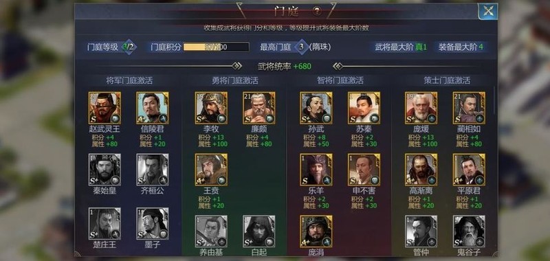 打开门庭便一目了然:将军相当于肉盾,勇将负责冲锋,智将与策士则类似法师。兵种分为骑兵、盾兵、枪兵和弓箭手。前三者自然在前排作战,弓箭手必须置于后排输出。若智将携带前排兵种,则需合理调配站位,确保阵型协同有效。