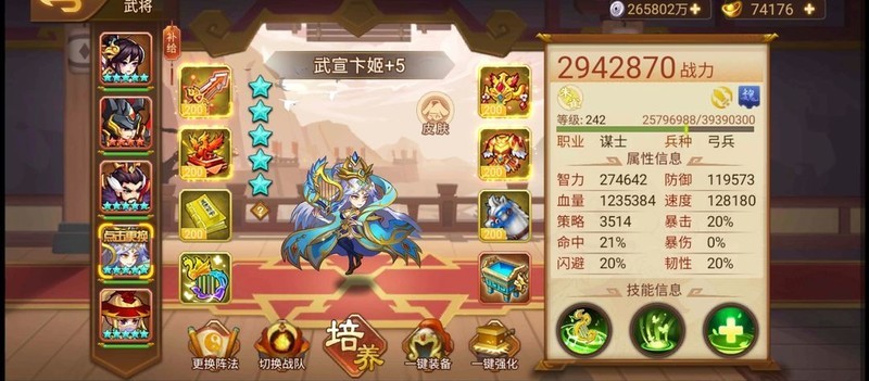 满配朱雀套装搭配卢,血量约123万,略低于理想数值。