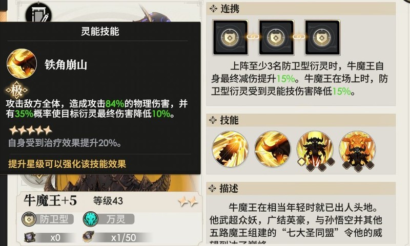 这张卡牌非常契合我们的阵容搭配,技能可以攻击全体敌人,并附加负面状态,效果十分理想。负面效果还能降低敌人最终伤害10%,实用性很强。同时,配合牛魔王释放大招时的回血机制和治疗加成,整体续航能力非常出色。这张卡不仅坦度够高,恢复能力也很优秀,能够很好地满足我们在战斗中的多种需求。