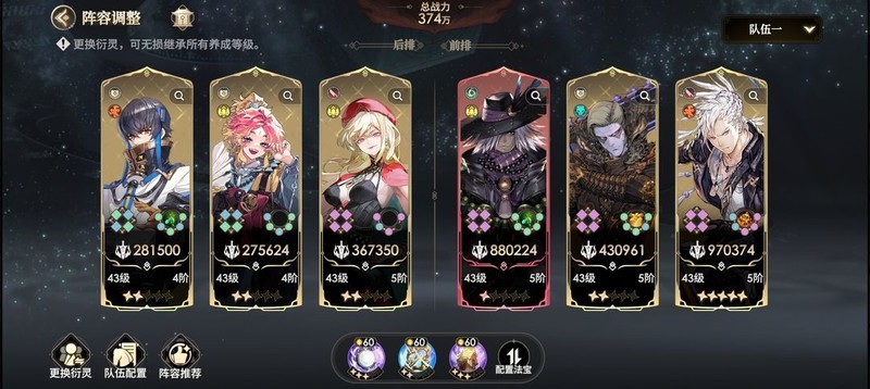 整个队伍需要保持前后排的坦度与恢复能力,虽然后排资源投入较少,属性稍低,但因其承担的伤害有30%被前排分摊,整体坦度不会明显下降,从而形成一个攻守兼备、配合良好的阵容。