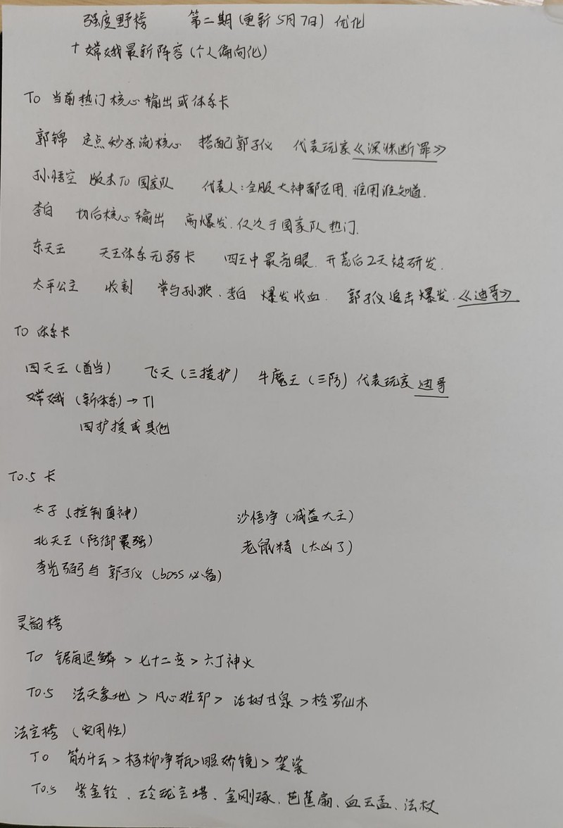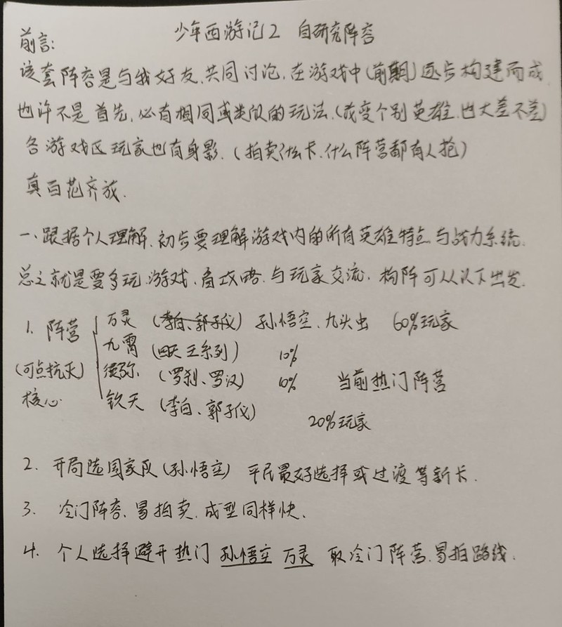 A4纸手写冷门阵容推荐