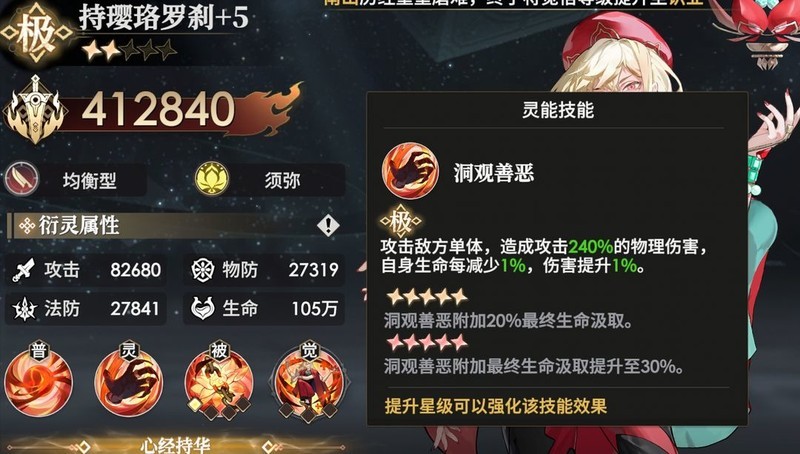 最关键的是他拥有极强的吸血能力,天赋中不断叠加吸血效果,最高可达55%,非常夸张。当罗刹生命值低于30%时,还能额外释放一次大招,而且不消耗任何能量,这个大招同样具备吸血效果,因此在血量较低时,完全可能通过一次大招瞬间回满血量。