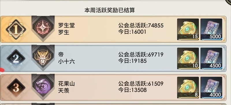 每周六结算公会活跃度,排名靠前的公会可获得元子奖励。