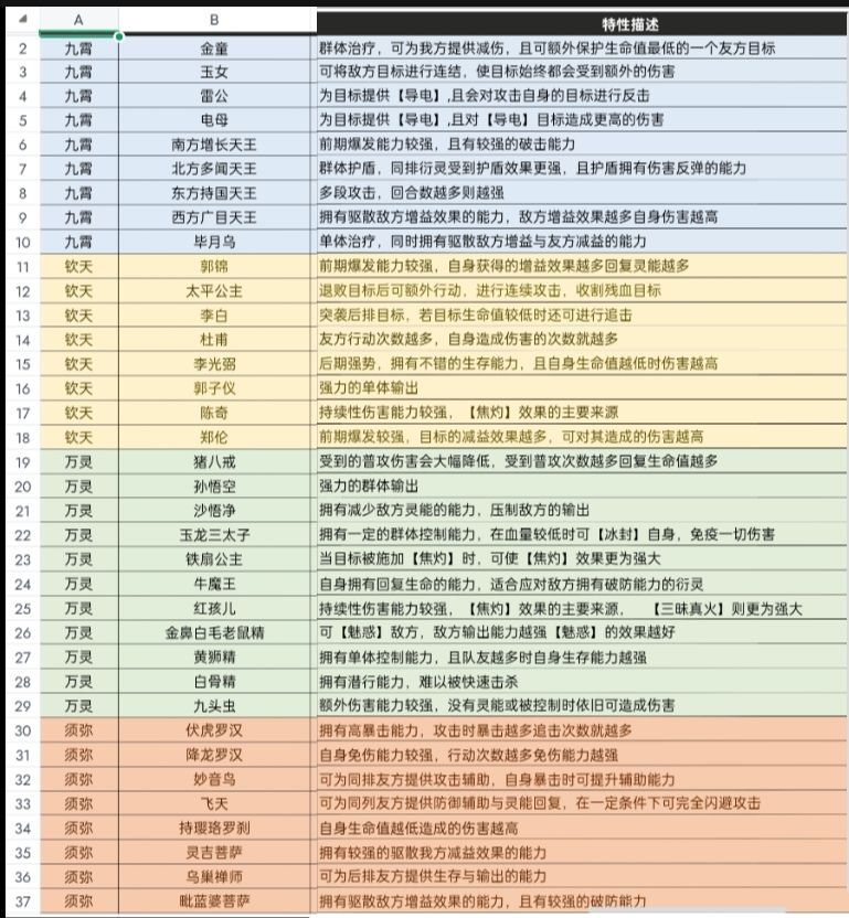三十六位英雄深度解析(图片来自官方)
