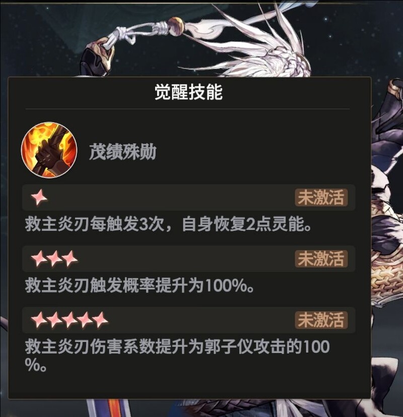 最终,该技能触发概率为100%,必定生效。因此我们选择郭子仪作为主力输出,他的质变发生在天赋达到九星阶段。此时他获得吸血能力,不仅大招可以吸血,普通攻击和触发炎任伤害时也能吸血,这使他成为兼具高输出与续航能力的核心角色。