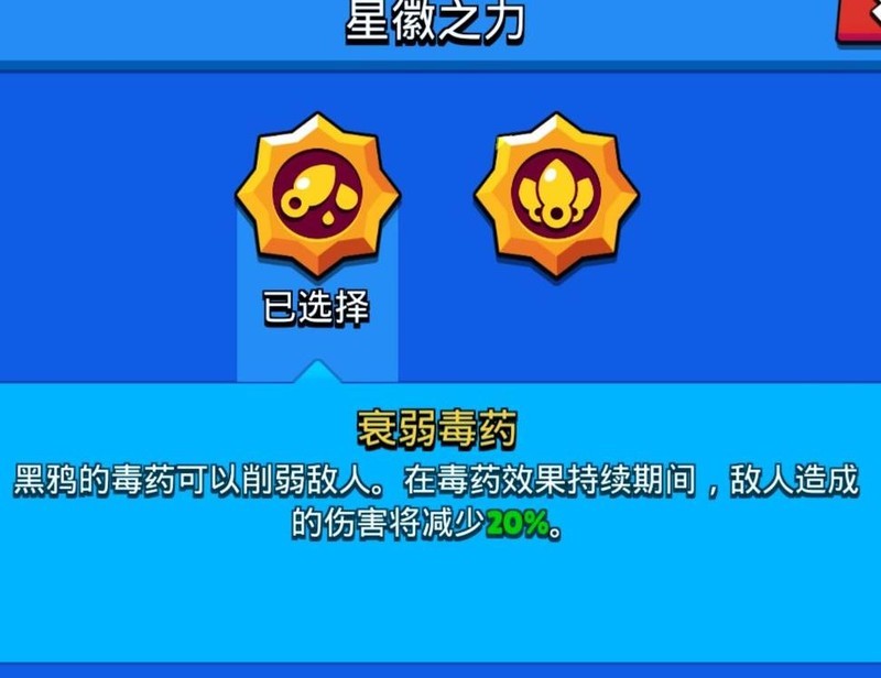 该星徽现为乌鸦高频率选用,降低20%所受伤害相当于间接提升生命值,面对中毒状态的对手时,实际承伤能力等同于将基础血量从3360提升至4200。
