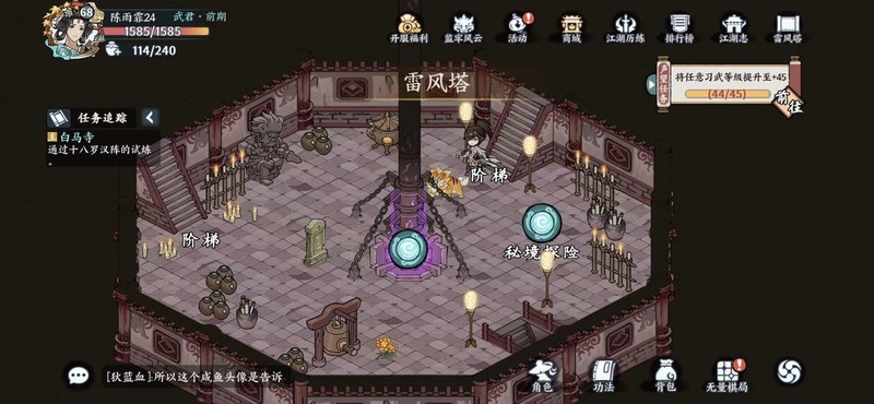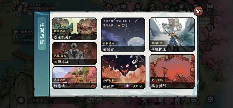 墨家机关阵用于获取功法提升材料,体力充足时可前往挑战。