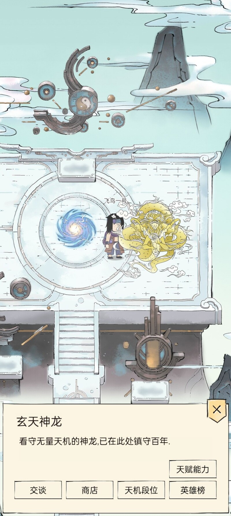 完成前置任务后进入无量云梯,右侧可见一条金龙,其天赋能力即为我们的天赋树,提升天赋树可增强基础实力。