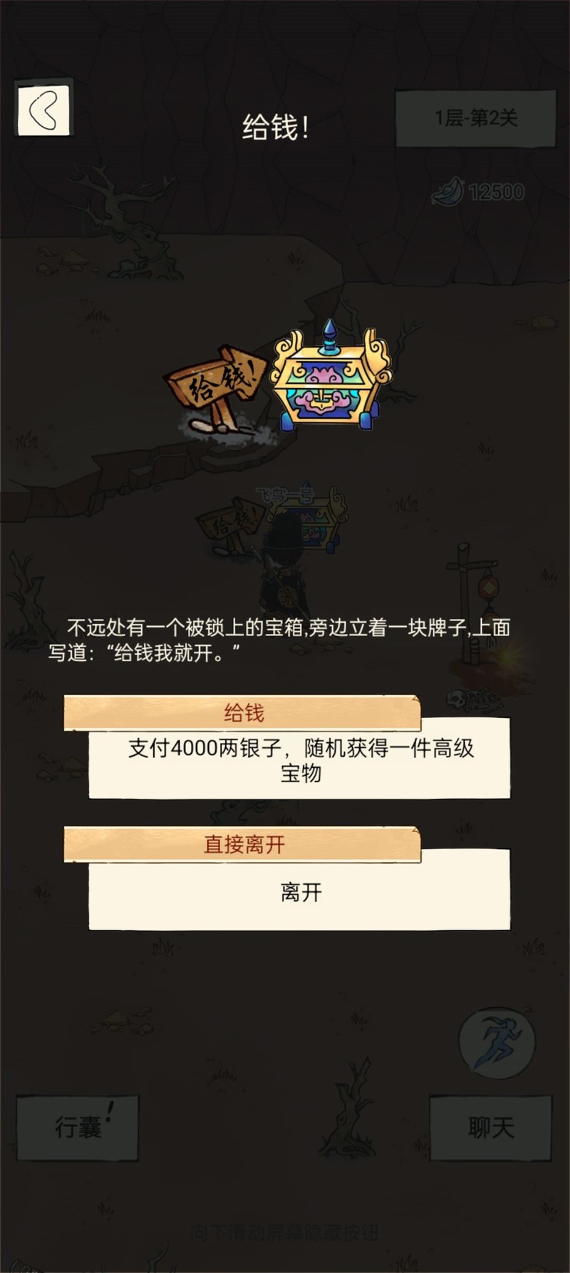 开启宝箱能获取珍贵物品和武功秘籍。
