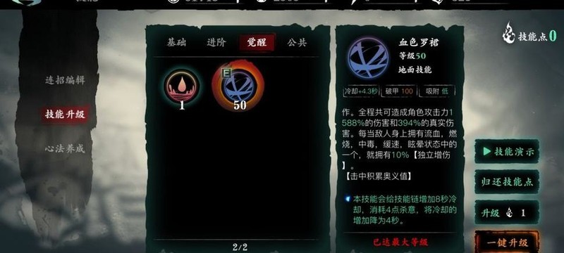 50级觉醒技能需消耗杀意,适合作为技能链末端释放,结合8点杀意带来的增伤效果,可实现单技清场的强力表现。