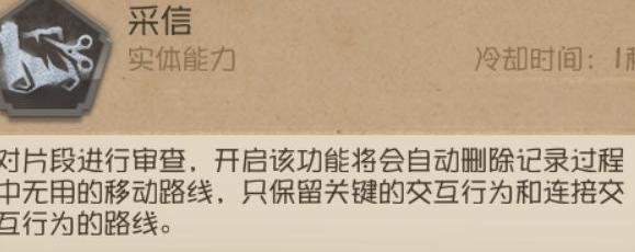 视野受限且不可移动,主要用于开局判断求生者位置,开启一阶存在感技能无效后,可记录破译、干扰、封门等行为。