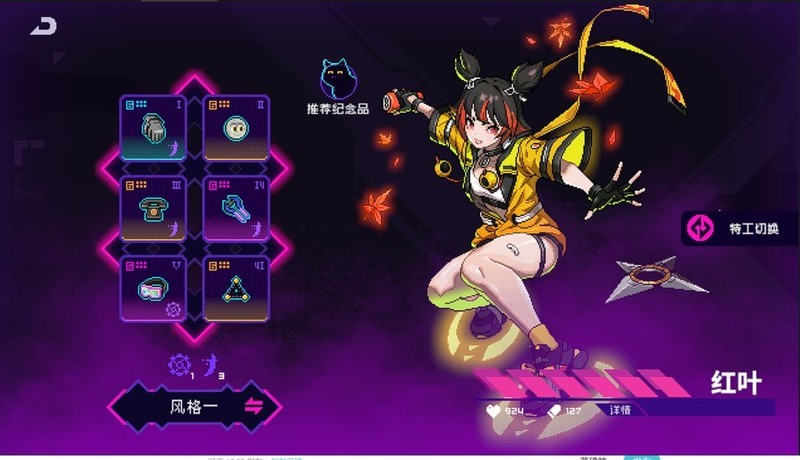 拳套可大幅提升苦无技能伤害,搭配月亮头或球衣均可。恶魔热线增强近战输出能力,能量剑确保忍具掉落,提升生存(红叶护盾类似低配版毛巾)。滑雪镜增加输出伤害,神性则提高机动性,便于躲避弹幕。
