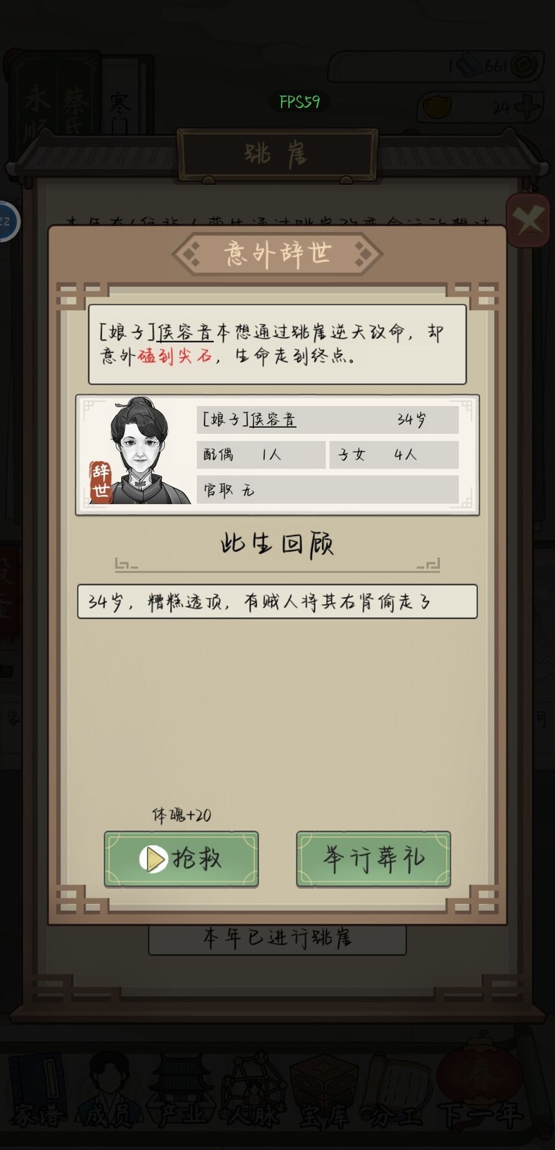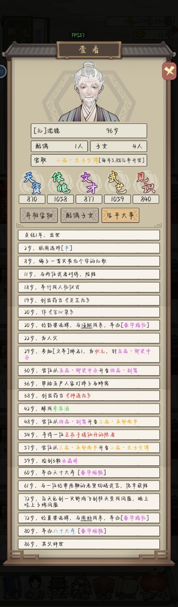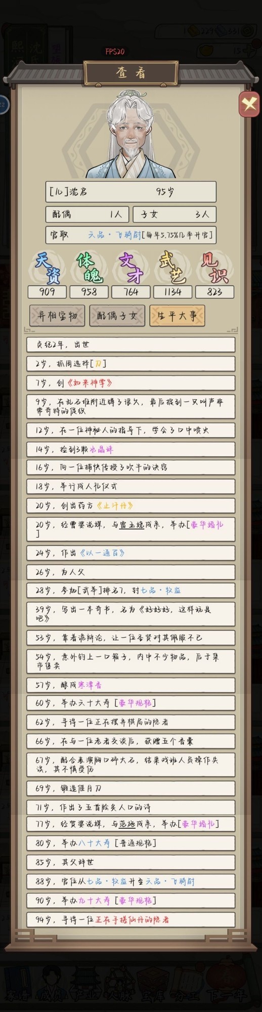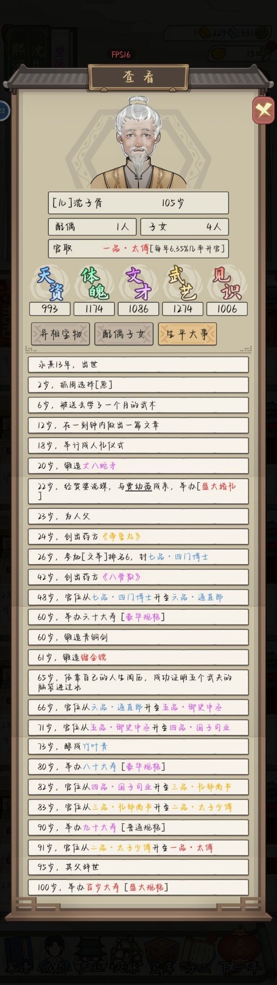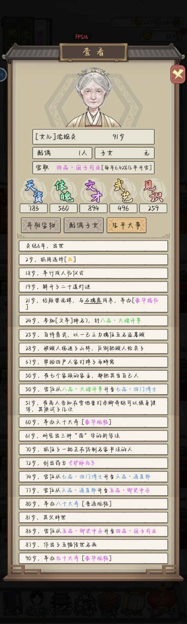 距离显族仅差数百势力,209年沈蓝尹突然离世,无奈之下只能选择长子继承家业。原本更倾向长女或次女,但始终刷不出来,选继承人实在太费元宝。后代资质普遍不佳,能力大不如前,实在无人可选,只能作罢。