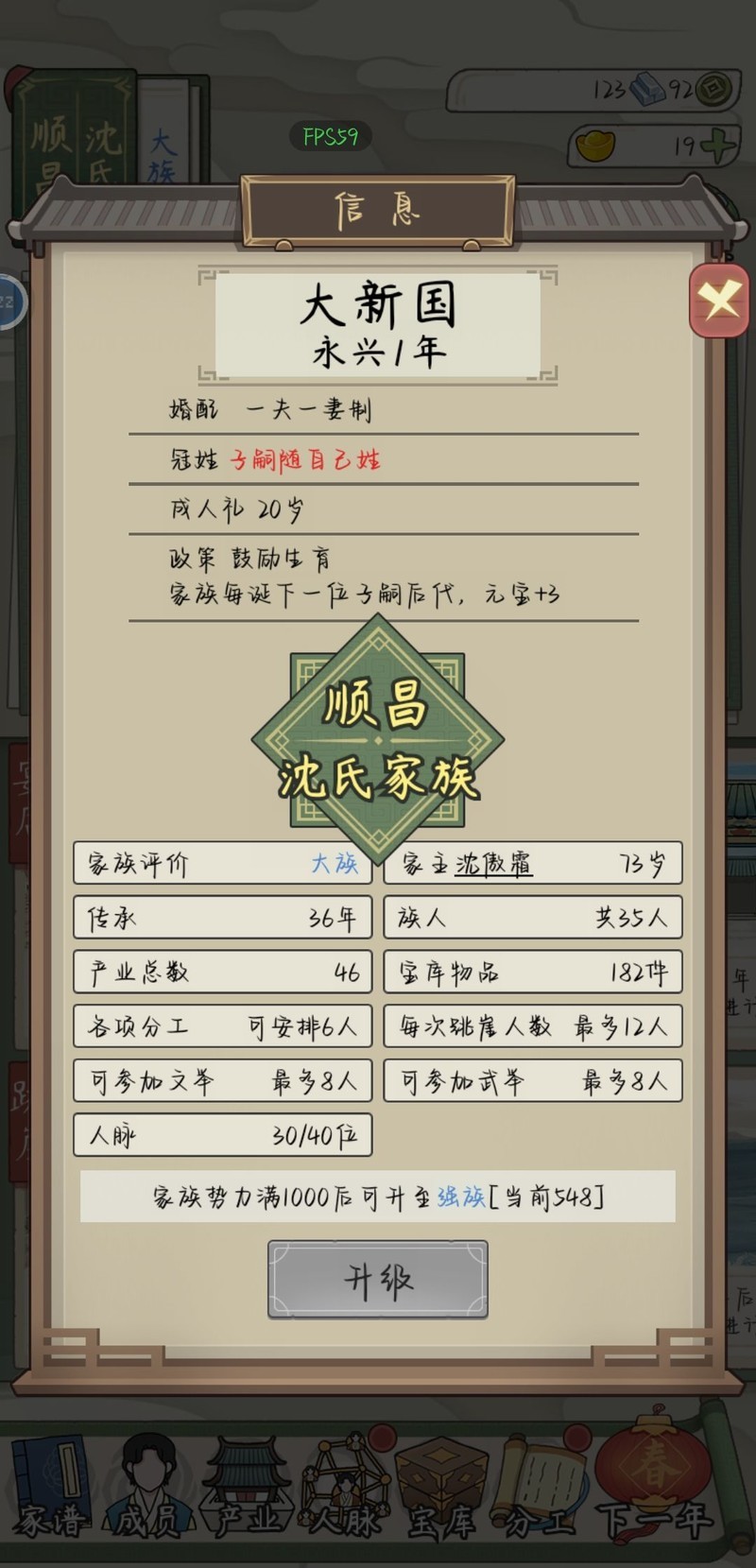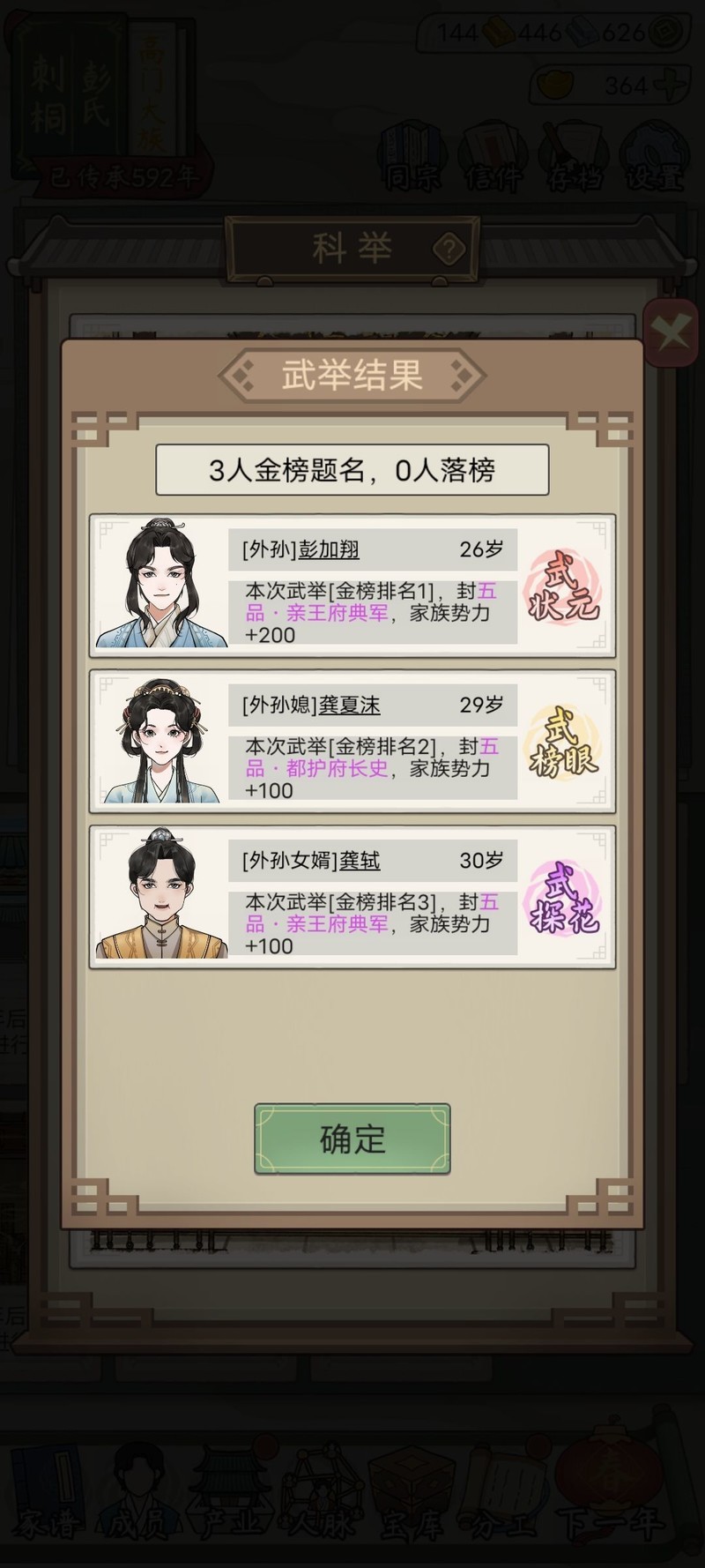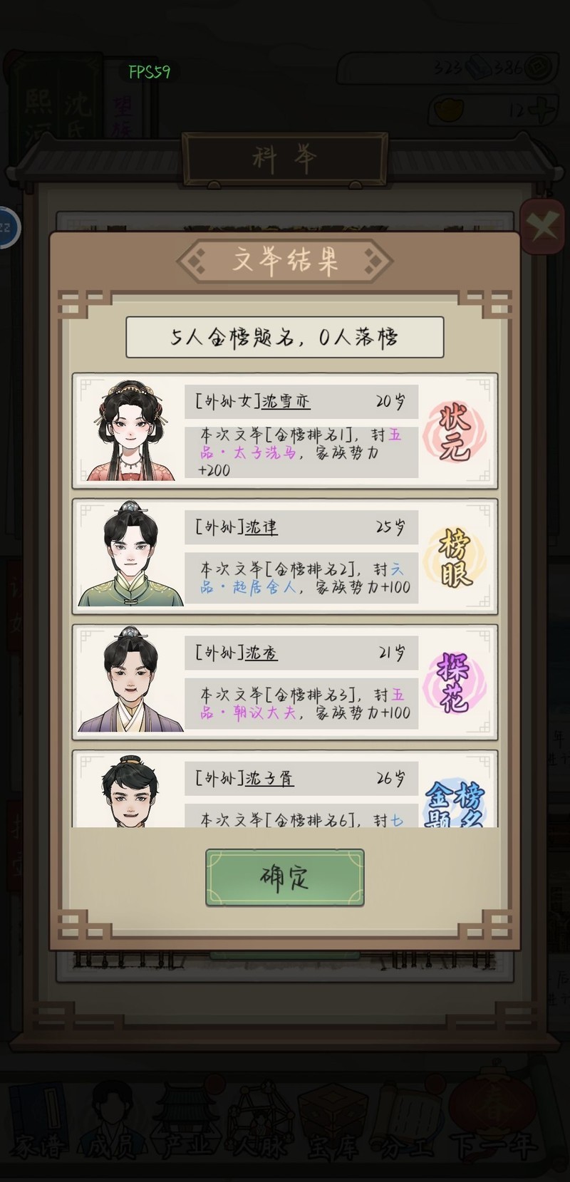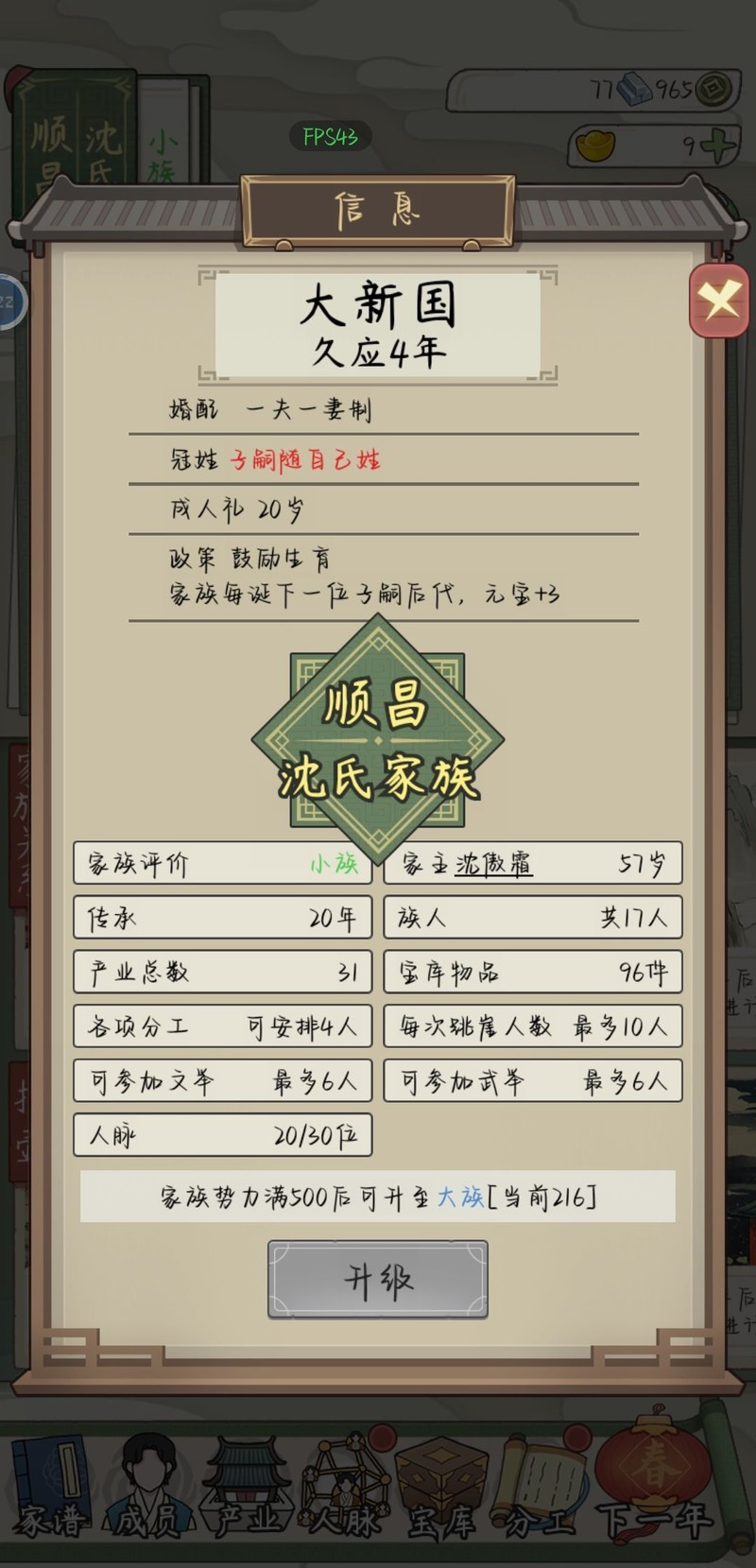 家族势力达到1500后开启科举系统,二代为官无俸禄,仅提升家族势力。