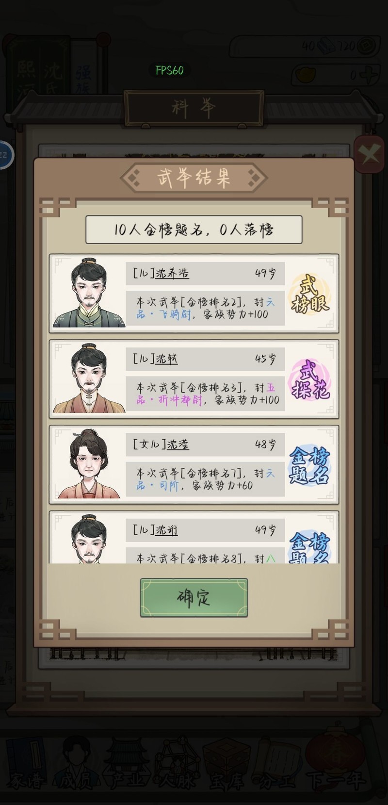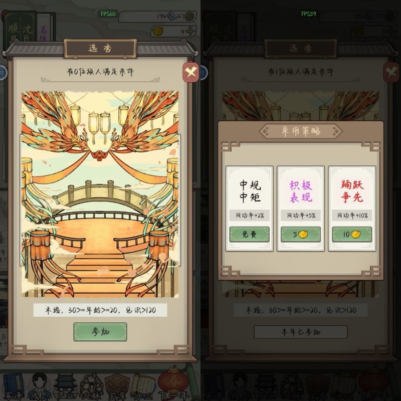 目前选秀尚未有人入选,失败可增加五点势力,入选的奖励尚不明确。看到有玩家提到,选中入选的女子作为家主会出现后继无人的情况,她唯一的作用可能只是进宫为家族带来势力和影响力。既然如此,不如让她安心在家相夫教子。