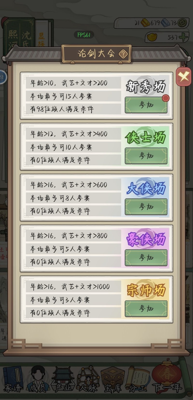 侠士场要求:年满十二,武艺与文才总分超四百。