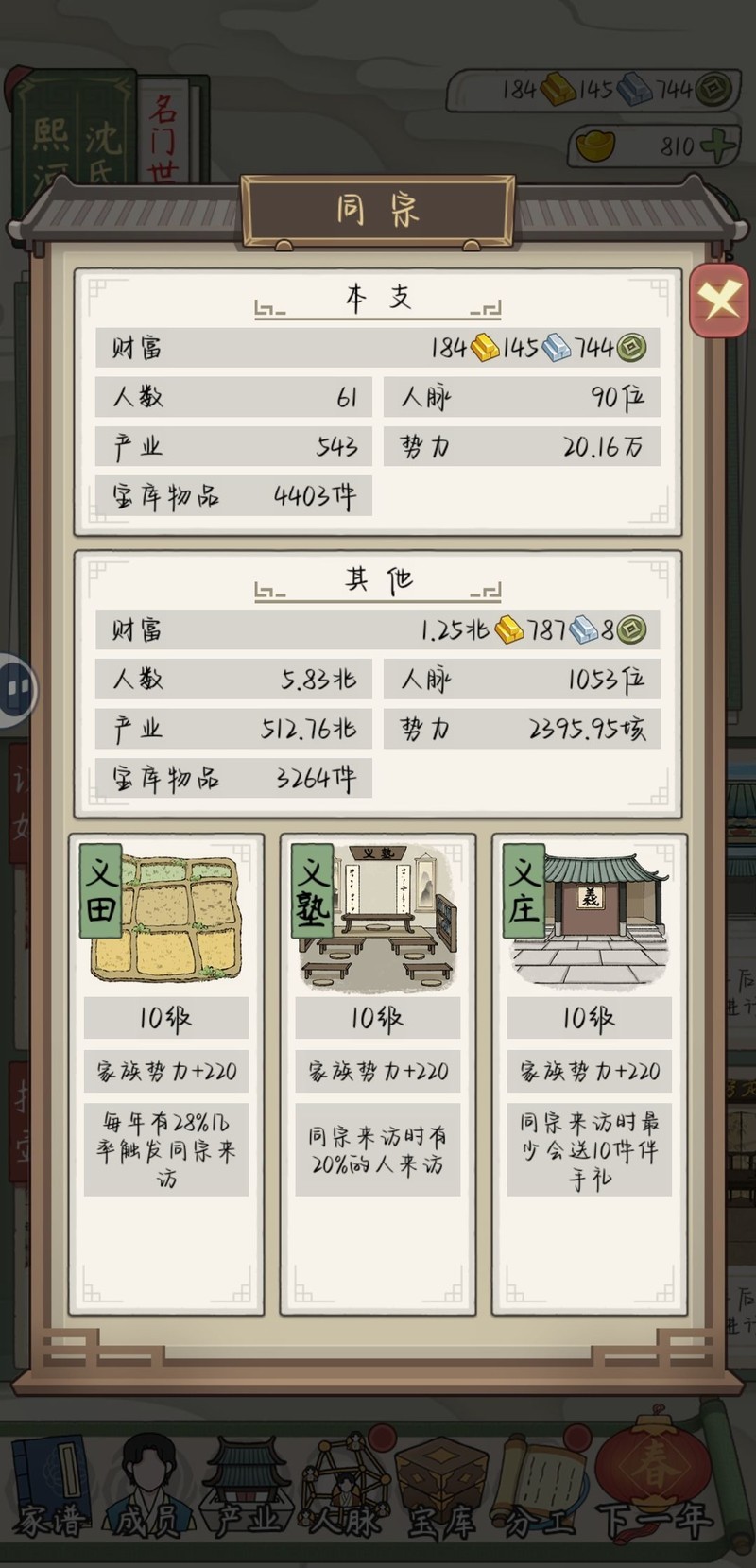同宗是在一代家主去世后开启的,能大幅增加势力,可以拉满关系,他们会经常送好礼过来,要不要选择?
