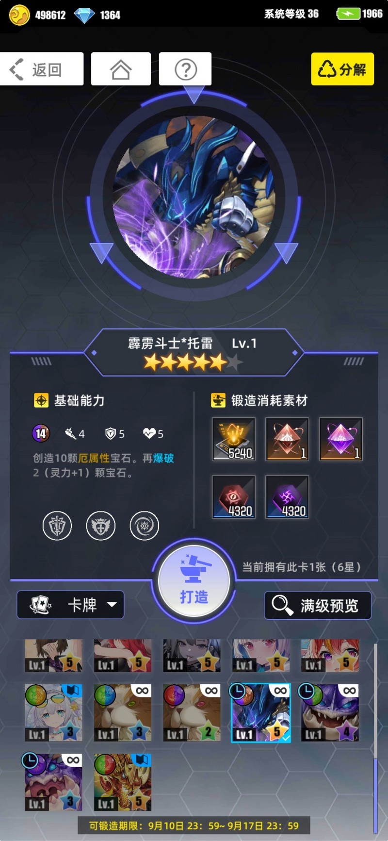 蔷薇芙的二技能具备加速启动效果,三技能可增加爆破次数,作为一张充能卡,性能中规中矩,充能效率尚可。不过整体价值不算突出,本期不建议抽。由于锻造已有霹雳斗士托雷,此卡抽取优先级排在第三位,仅在特定需求下值得考虑。