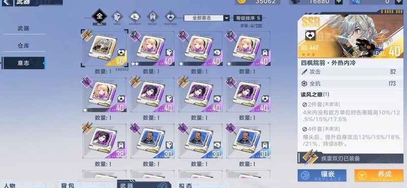 意志选择上无需过多纠结,强力的多集中在SR和SSR品质中。搭配时需契合武器定位,并尽可能升至满级,因其属性加成可直接计入角色面板,对整体战力提升显著。