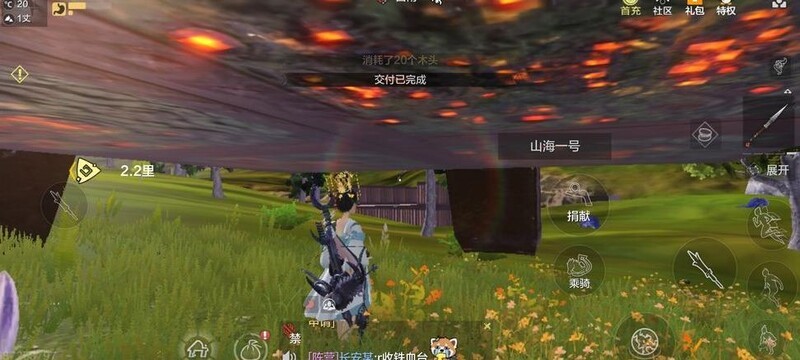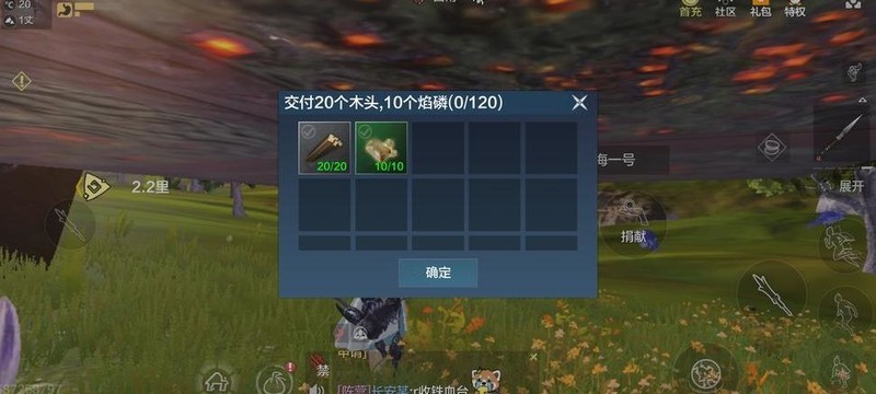 找到山海一号后,前往上海一号下方会出现捐献互动选项,需捐赠120个物品,其中包括80个木头和40个焰鳞,按要求完成即可。