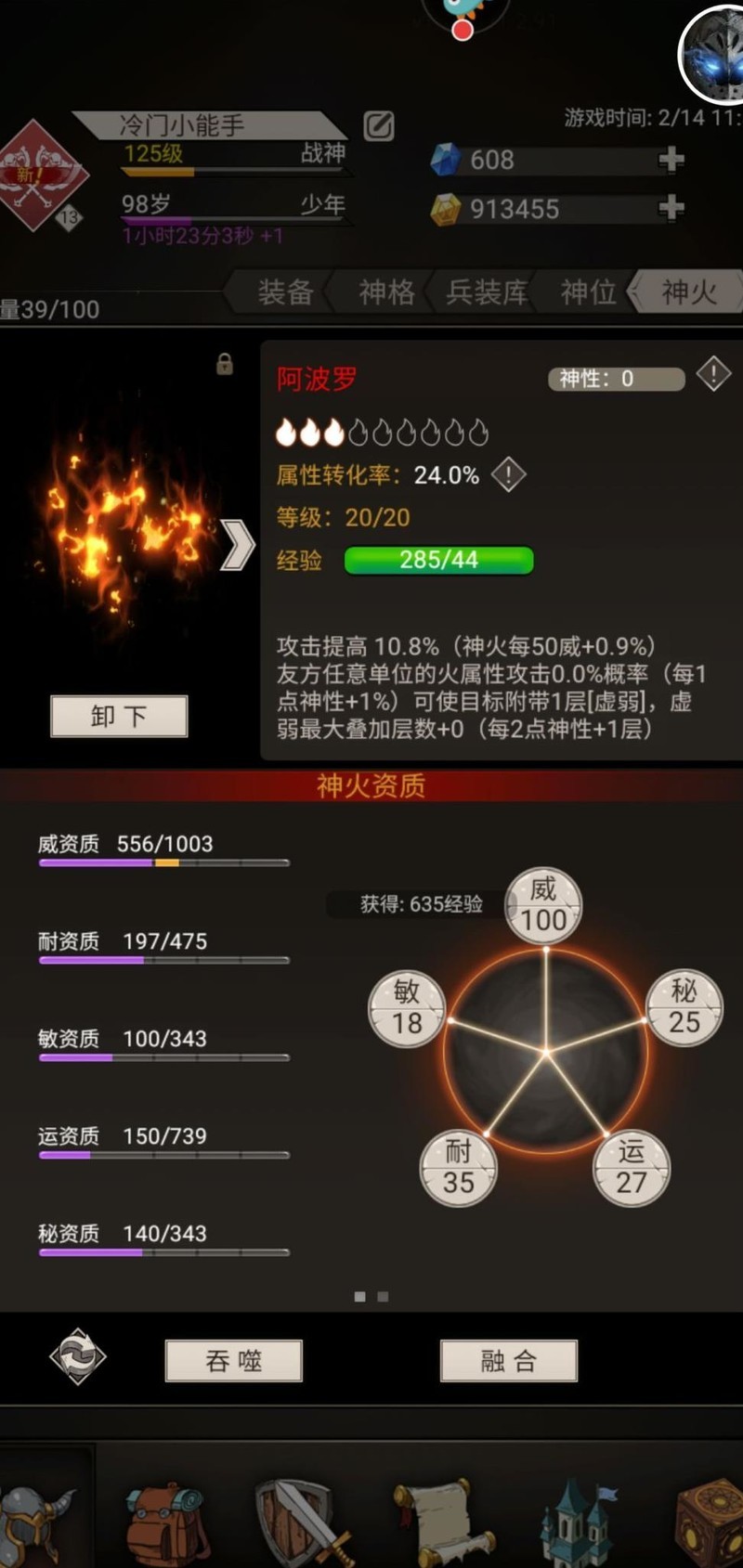 升级主火时优先选择魂火或具资质提升特性的神火。