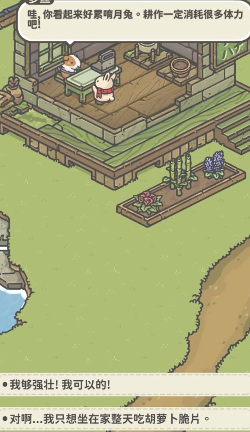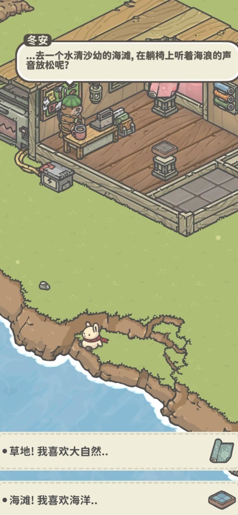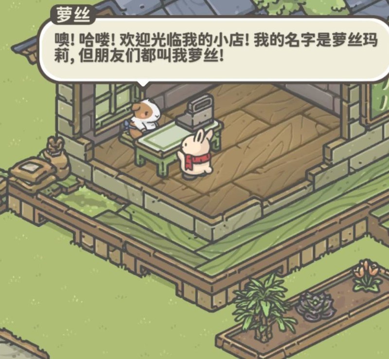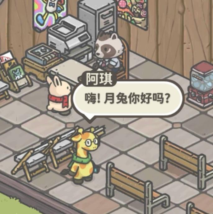 完成新手引导后,可前往兔子家、菜地、家具店、乡公所和码头。到达乡公所时,会遇见长颈鹿阿琪。