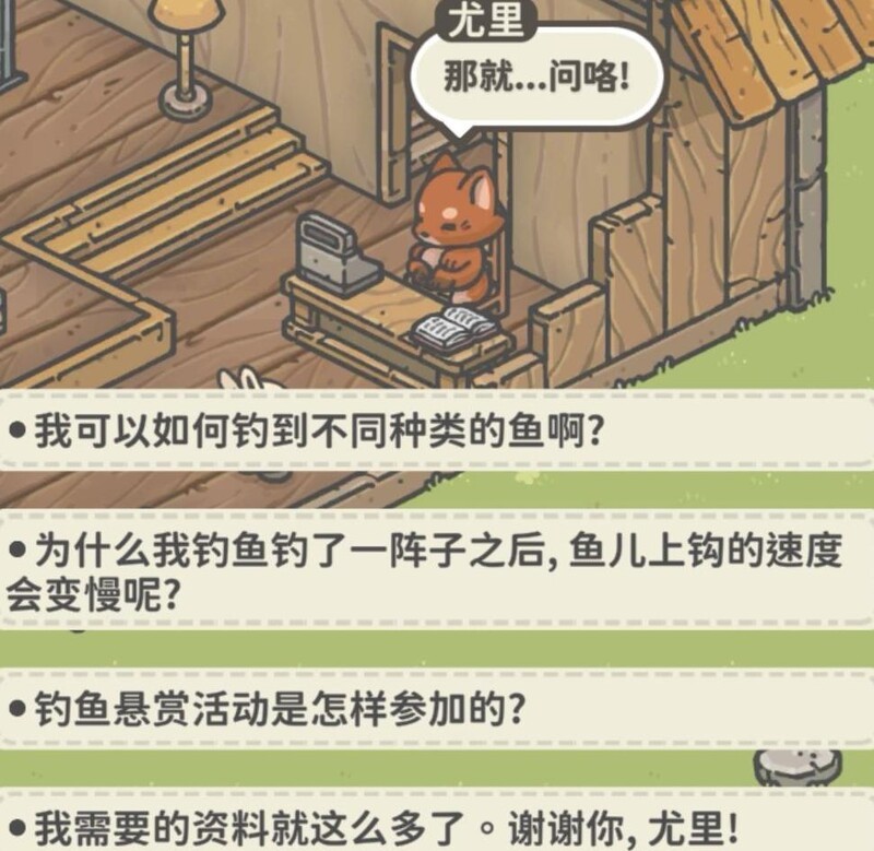 前往乡公所时会遇见正在修墙的冬安,与其对话可解锁装饰店。店内出售墙纸和地板,若商品为木纹款则无需购买,与初始款式相同。此外,附近还设有钓鱼点可供垂钓。