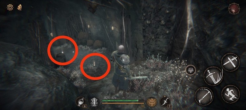 沿红标跳下,转黄标前行,红圈处可拾取物品。