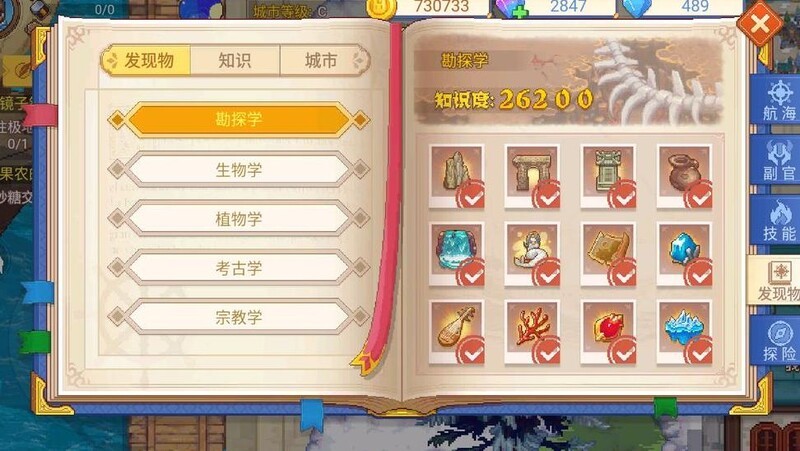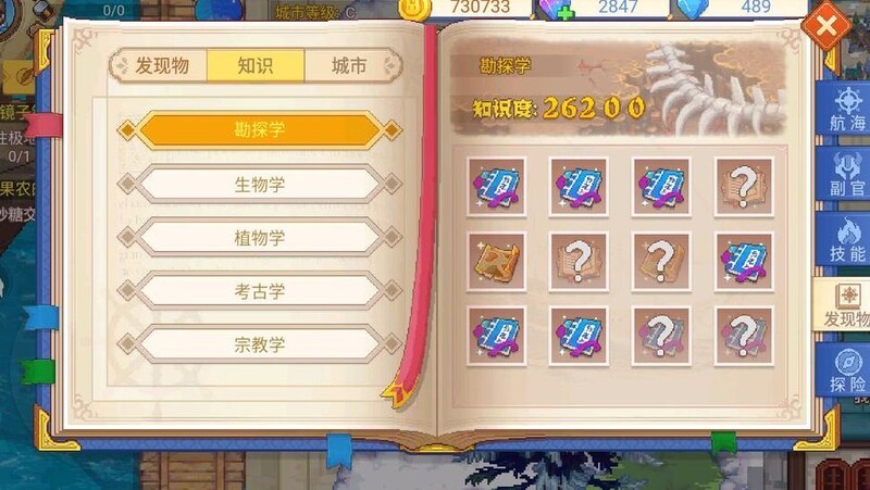 该板块汇总了所有发现物的名称、简介及所需知识等级,但未标注获取地点与提交奖励,实用性有限。知识部分展示了各类知识书及其对应提升的知识值,便于逐一对照查阅。需注意的是,知识书的获取方式并未在此说明,而是移至后续板块进行介绍。
