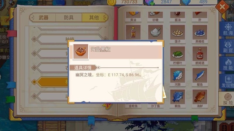 材料种类繁多,涵盖烹饪原料、渔获来源、书籍获取途径及藏宝图的获得方式,这正是众多老玩家习惯查阅航海日志的关键所在,毕竟难以记住所有细节位置。