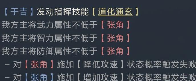 道化通玄技能在比较属性时,依次按照武力、智力、防御和攻速的顺序进行判定,一旦完成两次属性交换便会终止效果。因此大多数情况下,敌方被交换的属性通常为武力或智力之一。若我方主将主属性为智力,往往还会触发一次防御属性的交换;而若为主武力将,则更有可能进一步交换到攻速属性,实际效果受主将类型影响较大。
