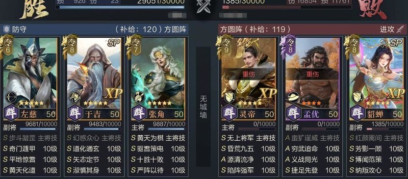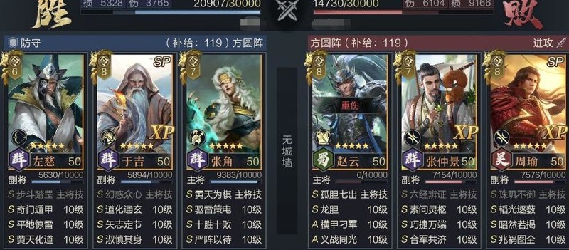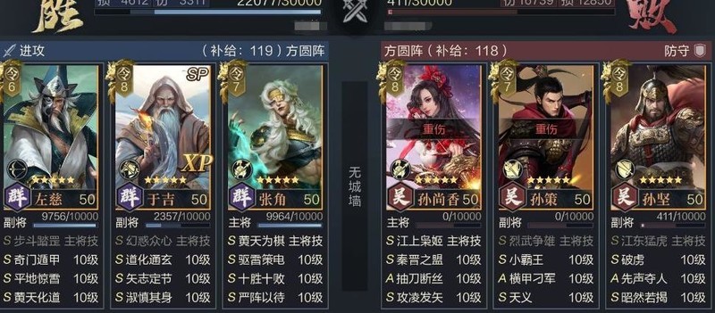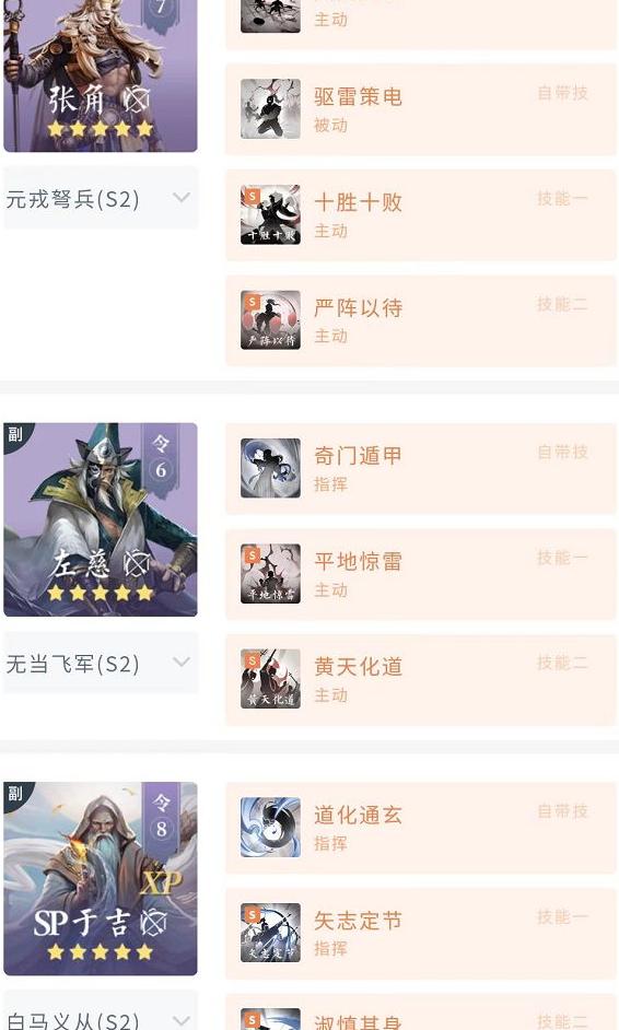 布阵选择:3号位(SP于吉)、5号位(张角)、6号位(左慈),或2号位(SP于吉)、5号位(张角)、6号位(左慈),确保左慈位于后排,以获得矢志定节的增伤效果。