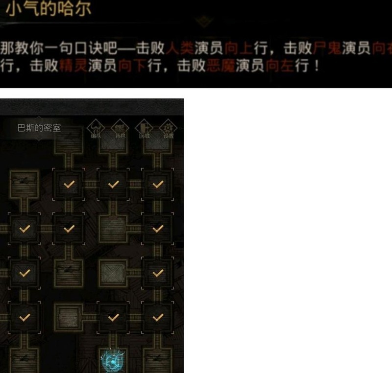 在塔里厄斯外传的另一座迷宫中,注意左上角提示:若显示正在熔化战争傀儡,点击带触角的傀儡即可;提示熔炼石头时,点击六点钟方向的特定怪物;当提示正在生产怪物时,则点击出现的怪物与陷阱。按此方式操作,基本无需战斗便可直达BOSS。