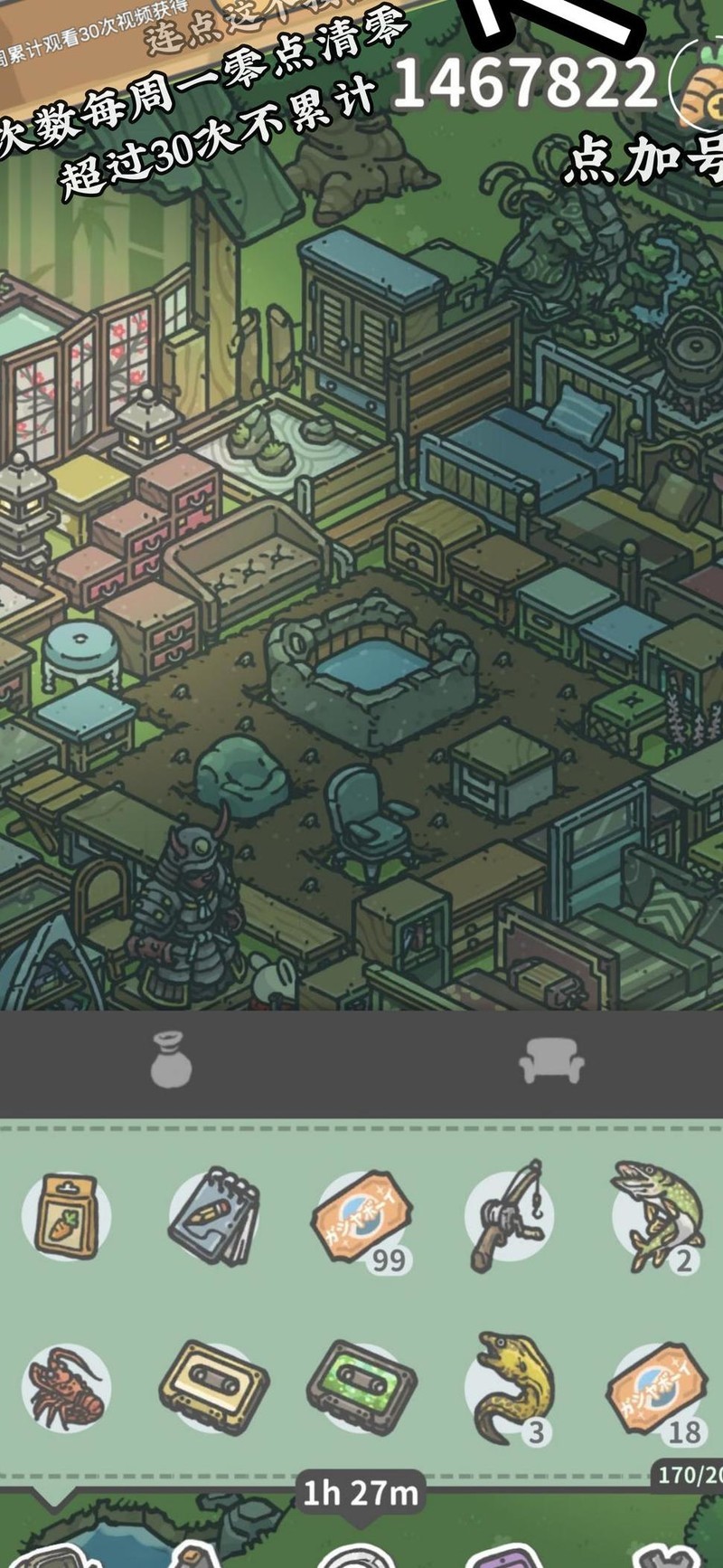 调整系统时间可加速堆肥种萝卜。安卓端通过观看30个广告,配合点击器能更快刷取家具并出售;而iOS国际版界面变为充值商城,无法刷家具,需看广告后在家门口找推销员完成任务。
