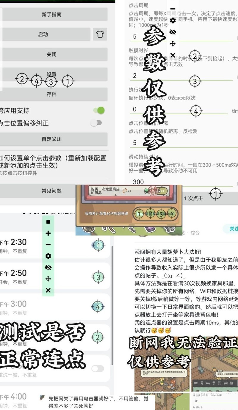 我设置了四个点击点,并分别设定了不同的延迟时间,并非同时点击,避免重叠导致无效操作。