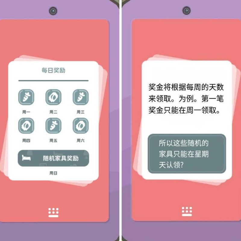完成首周签到后,后续签到奖励将按星期对应发放,无需连续签满七天即可领取家具。例如,周日登录即可获得当日家具奖励,无论此前是否签到;周三登录则只能领取第三个(周三)对应的奖励。