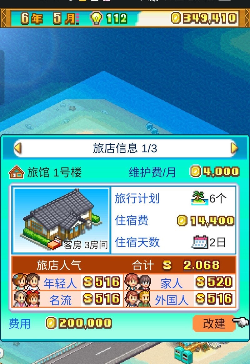 前期建设完成后,就能轻松获得S级旅店,收集印章也非常方便。如果土特产店和水果店等级较低,建议购买提升魅力的种子使用。建造时若担心资金不足,可先建别墅,之后再升级为旅馆。