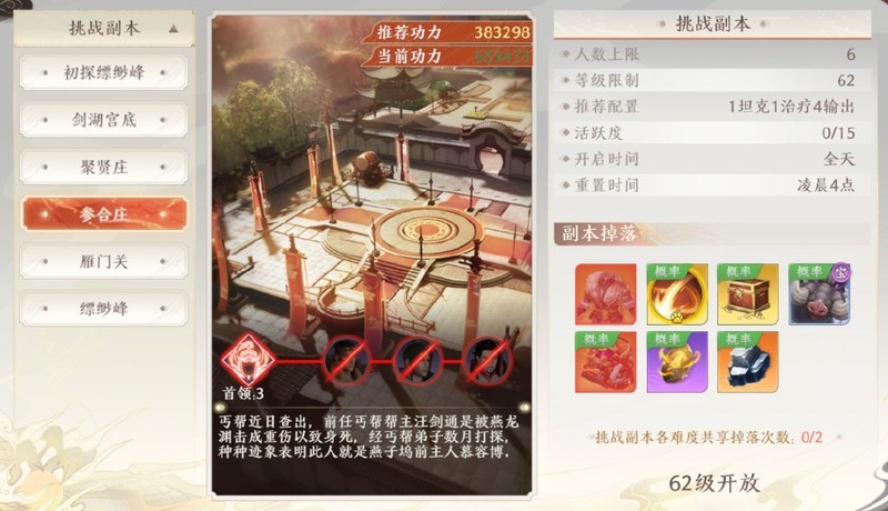 丐帮近期查明,前任帮主汪剑通实为燕龙渊所伤致死。经数月追查,线索指向燕子坞前主人慕容博。此副本最多允许6人组队进入,角色需达62级方可参与。建议队伍配置为1名坦克、1名治疗及4名输出职业,每日凌晨4点重置。推荐总战力达到383298以上。玩家可通过点击界面中的首领头像,查看其核心技能详情,便于提前制定应对策略。