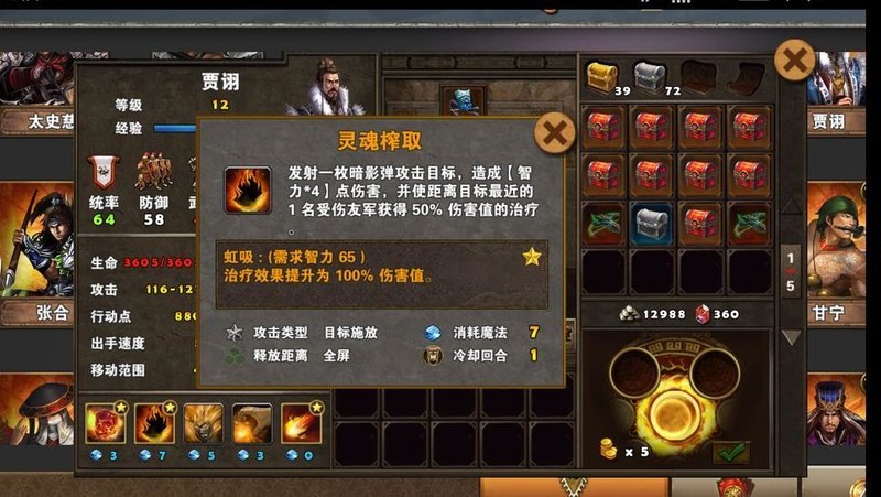 兼具输出与治疗能力,攻守兼备,形成双重优势,在连锁施法的强化下威力倍增,远超普通单一伤害或治疗技能。以刘备为例,其一技能为单体恢复,治疗量为智力乘以五,略高于灵魂榨取。该技能恢复效果极为突出,堪称全游戏顶尖。对阵贾诩时,若未能一举消灭其一组兵力,往往瞬间被完全回血,屡见不鲜。