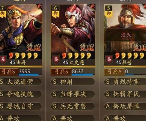 目前肉弓阵容的主流战法基本固定为四种,其中陆逊与太史慈的技能获取相对容易,抽取概率较高,搭配方式也更加灵活多变。而程普若想达到顶级配置,则需依赖刘备、诸葛亮等高御核心武将的关键战法,这类资源较为稀有,获取难度较大。对于缺乏草船借箭、军民同心等强力辅助战法的普通玩家,可考虑选用御敌屏障、嘲讽类战法来增强队伍坦度,有效为陆逊和太史慈创造更安全的输出环境,提升整体生存能力。战法选择应根据自身武将与战法资源合理搭配。每位玩家对肉弓的理解不尽相同,关键在于找到一套适合自己阵容、稳定且胜率较高的组合方案,才能在实战中发挥最大效能。
