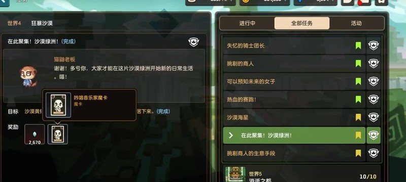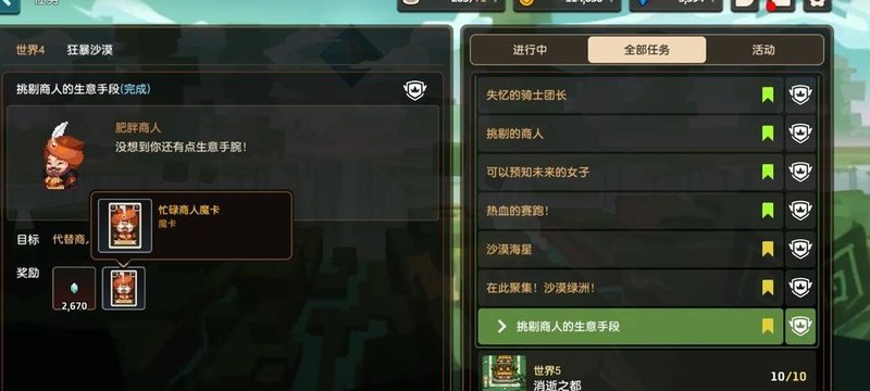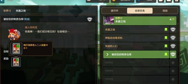 两位精打细算的商人联手开启魔法卡牌,完成普通10-1任务被封住的物资仓库即可获得奖励。