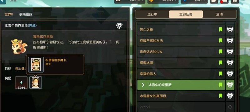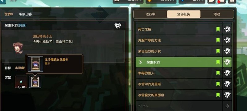 冰冷魔镜女巫的魔卡,完成普通8-3支线探索冰洞后获得的奖励道具。