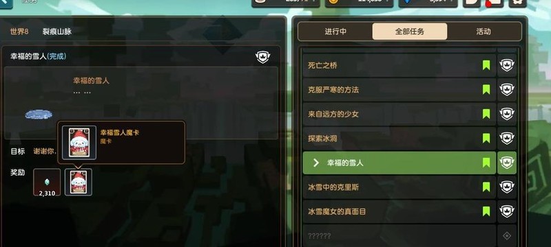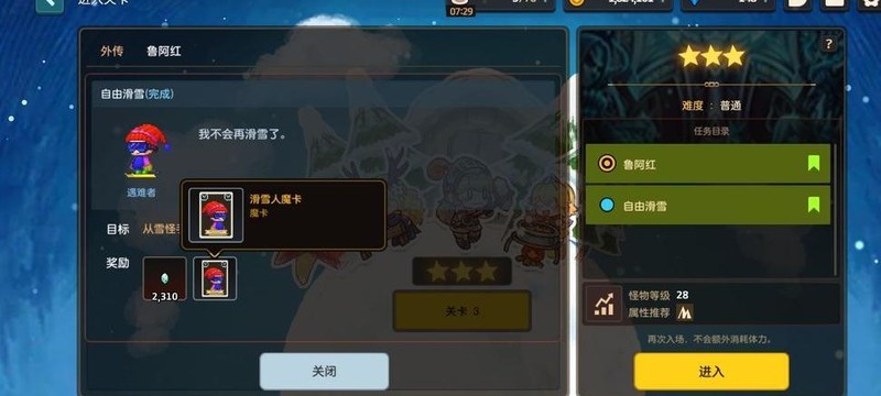幸福雪人魔卡,完成普通8-4支线幸福的雪人后获得的奖励道具。